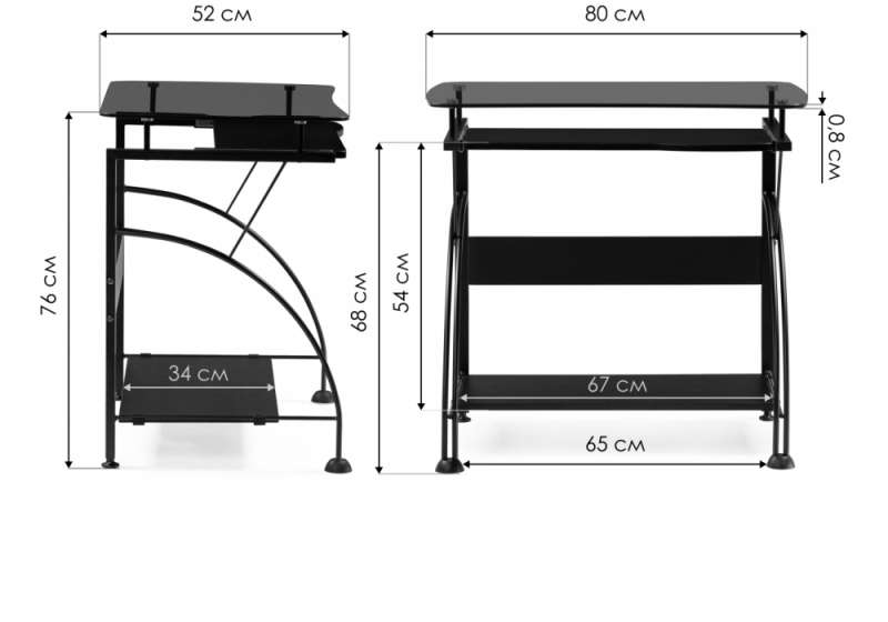 Компьютерный стол Glen 80х52х76 black (52x76)